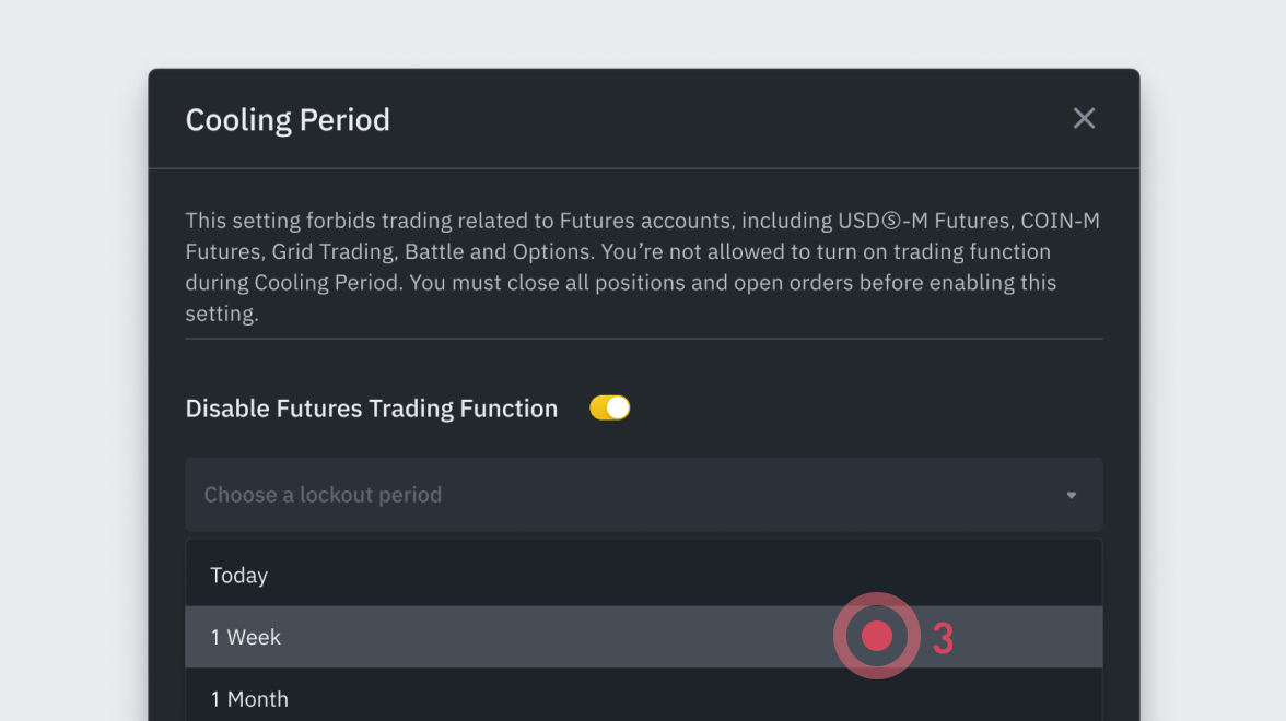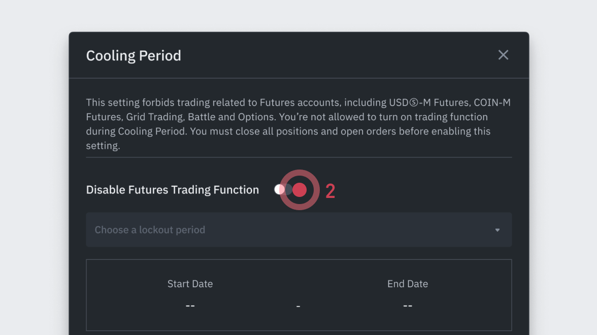 To encourage self-discipline and responsible trading, OctaDeEpics launched the Cooling-off Period function for users to temporarily disable derivative trading activities and abstain from compulsive trading behavior.